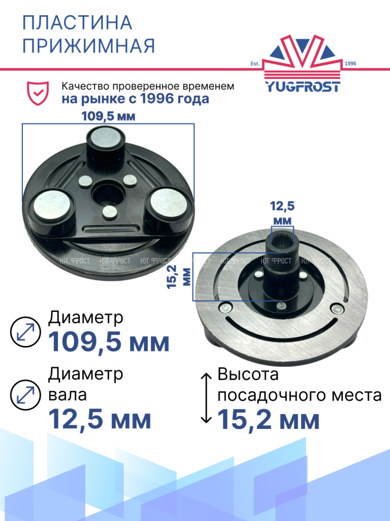 Прижимные пластины, также известные как пластины сцепления, располагаются в механизме электромагнитного сцепления компрессора. Обеспечивают эффективное соединение между шкивом и компрессором при включении сцепления. Признаки поломки проявляются в характерном шуме, запахе гари и исправляются путем замены пластины.