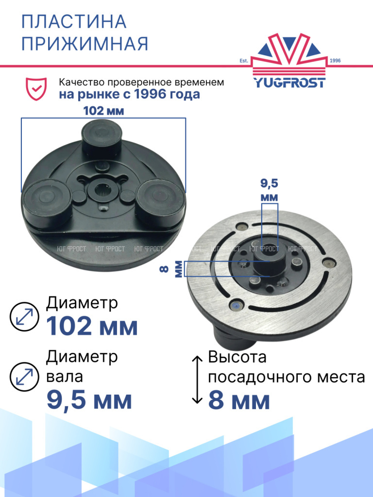 Прижимные пластины, также известные как пластины сцепления, располагаются в механизме электромагнитного сцепления компрессора. Обеспечивают эффективное соединение между шкивом и компрессором при включении сцепления. Признаки поломки проявляются в характерном шуме, запахе гари и исправляются путем замены пластины.