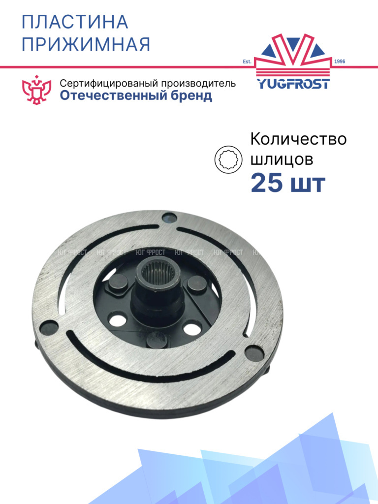 Прижимные пластины, также известные как пластины сцепления, располагаются в механизме электромагнитного сцепления компрессора. Обеспечивают эффективное соединение между шкивом и компрессором при включении сцепления. Признаки поломки проявляются в характерном шуме, запахе гари и исправляются путем замены пластины.
