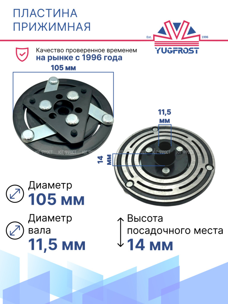 Прижимные пластины подходят для автомобилей Peugeot 307. Изготовлены из прочного металла, устойчивого к износу и температурным перепадам. Наши прижимные пластины для Пежо 307 просты в установке, подходят для замены при ремонте или поломке компрессора. Удостовериться, что деталь подходит вашей машине, можно на нашем сайте во вкладке Применимость. Остались вопросы? Свяжитесь с нами!