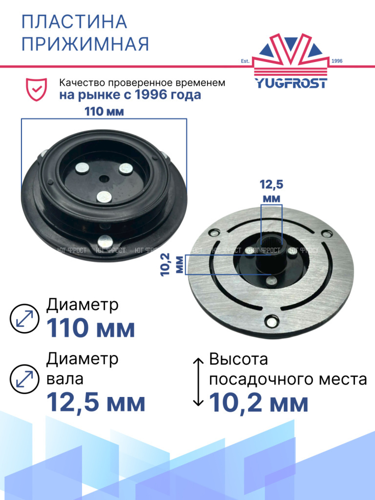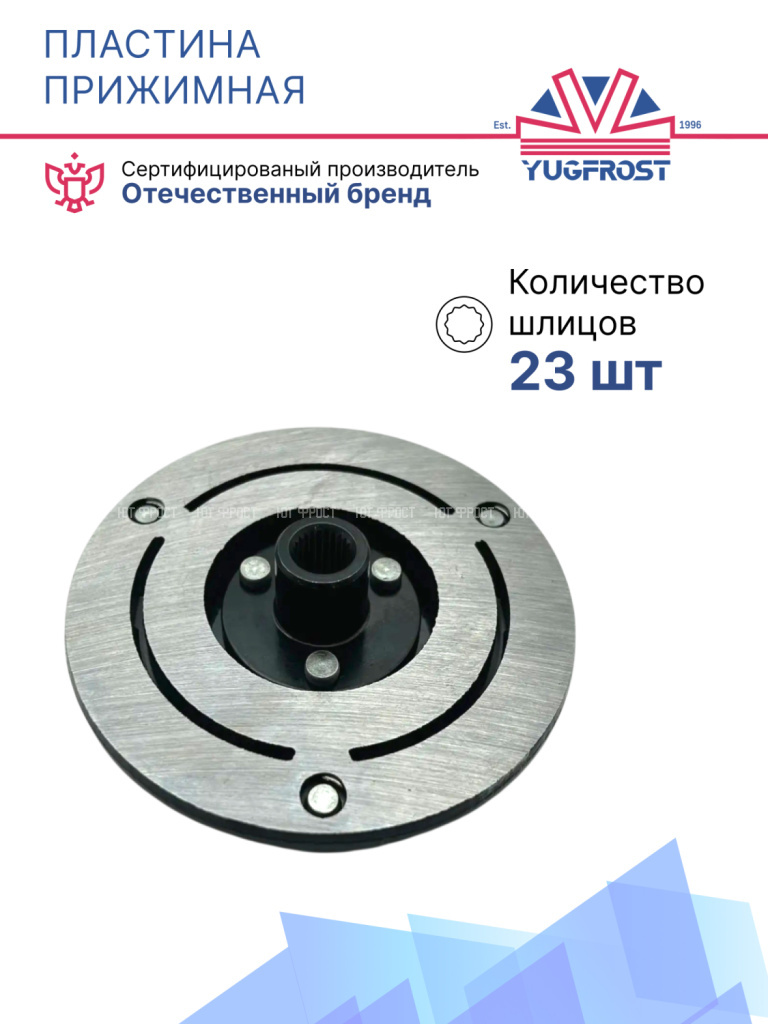 Прижимные пластины, также известные как пластины сцепления, располагаются в механизме электромагнитного сцепления компрессора. Обеспечивают эффективное соединение между шкивом и компрессором при включении сцепления. Признаки поломки проявляются в характерном шуме, запахе гари и исправляются путем замены пластины.