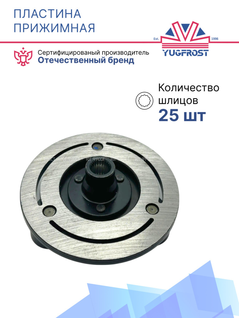 Прижимная пластина – один из наиболее высоконагруженных элементов компрессора автокондиционера. В неактивном состоянии элемент расположен свободно от вращающегося шкива на валу компрессора. При появлении напряжения на электромагнитной муфте происходит смыкание поверхностей – инициируется движение хладагента и охлаждение салона. Зацепление на валу осуществляется с помощью шлицевого или шпилечного соединения, а передача момента – с помощью насечек. Проблемы возникают по причине физического износа детали. Проблемы проявляются в характерном шуме, запахе гари и исправляются,путем замены прижимной пластины.