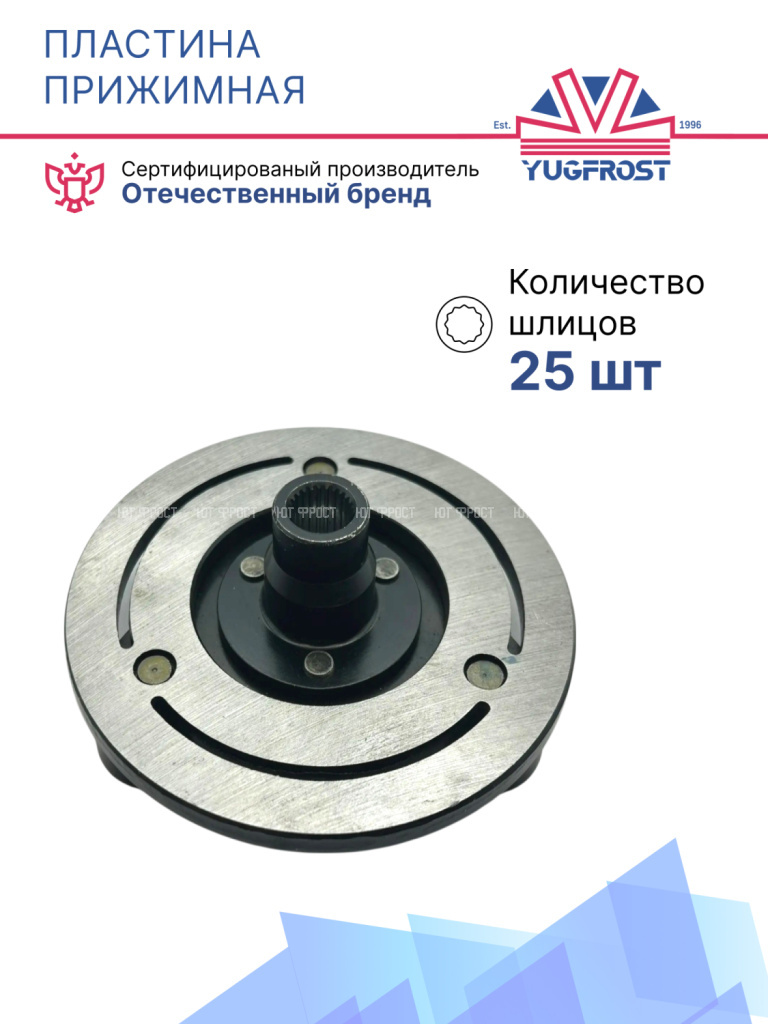Прижимная пластина – один из наиболее высоконагруженных элементов компрессора автокондиционера. В неактивном состоянии элемент расположен свободно от вращающегося шкива на валу компрессора. При появлении напряжения на электромагнитной муфте происходит смыкание поверхностей – инициируется движение хладагента и охлаждение салона. Зацепление на валу осуществляется с помощью шлицевого или шпилечного соединения, а передача момента – с помощью насечек. Проблемы возникают по причине физического износа детали. Проблемы проявляются в характерном шуме, запахе гари и исправляются,путем замены прижимной пластины.