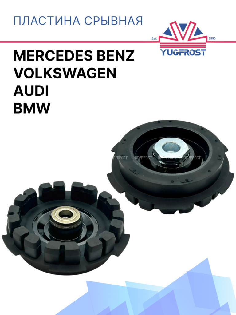 ПодробнееПластина срывная компрессора кондиционера для BMW / Mercedes Benz / Audi / Volkswagen – важный элемент защиты системы кондиционирования от перегрузок и заклинивания. Используется для предотвращения повреждений компрессора, продлевая срок его службы. Изготовлена из прочного металла, гарантируя надежность и долговечность. Наша срывная пластина для БМВ / Мерседес Бенц / Ауди / Фольксваген проста в установке, подходит для замены при ремонте или поломке компрессора. Доставка по всей России. Удостовериться, что деталь подходит вашей машине, можно на нашем сайте во вкладке Применимость. Остались вопросы? Свяжитесь с нами! -
