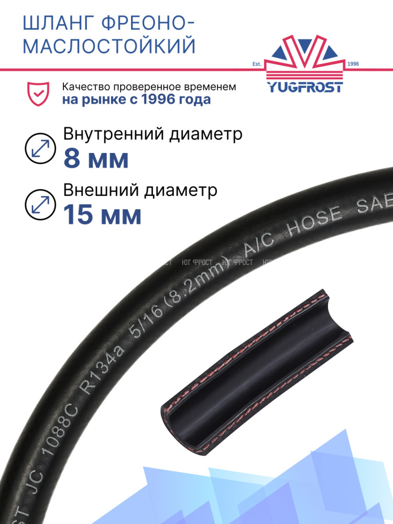 Шланг фреоно-маслостойкий YUGFROST #6 5/16 (8мм х 15мм) тонкостенный