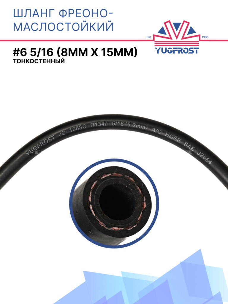 Шланг тонкостенный YUGFROST #6 5/16, внутренний диаметр 8 мм. Применяется в системах автомобильного, промышленного кондиционирования и рефрижераторных установках. Из-за утонченной толщины стенки шланг популярен при использовании внутри конструкции автомобиля.