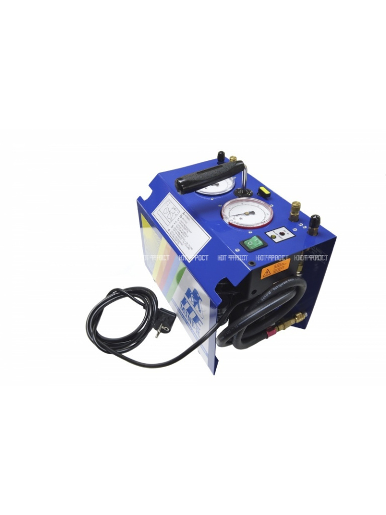 Подходит для всех типов хладагентов CFC, HFC и HCFC. Компрессор со смотровым стеклом для контроля уровня масла и внутренним термистором. Компрессор модифицирован для высокого давления всасывания. Сменный фильтр-осушитель для защиты компрессора. Защищен от сверхвысокого давления до 27бар. Низкий уровень шума-50 Дцб. Шланги, выдерживающие большое давление, с интегрированными шаровыми и виброгасящим манометром диаметром 80,0мм.