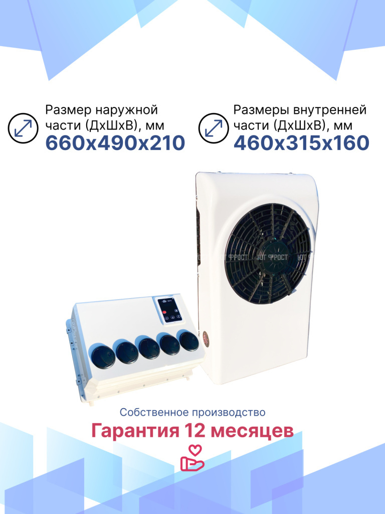 Мощность до 3 кВт. Прекрасное решение для охлаждения салона грузового транспорта или спецтехники. В комплект кондиционера входит набор метизов, наружный и внутренний блоки. Монтаж оборудование можно произвести самостоятельно, останется только заправить систему фреоном в сервисном центре.