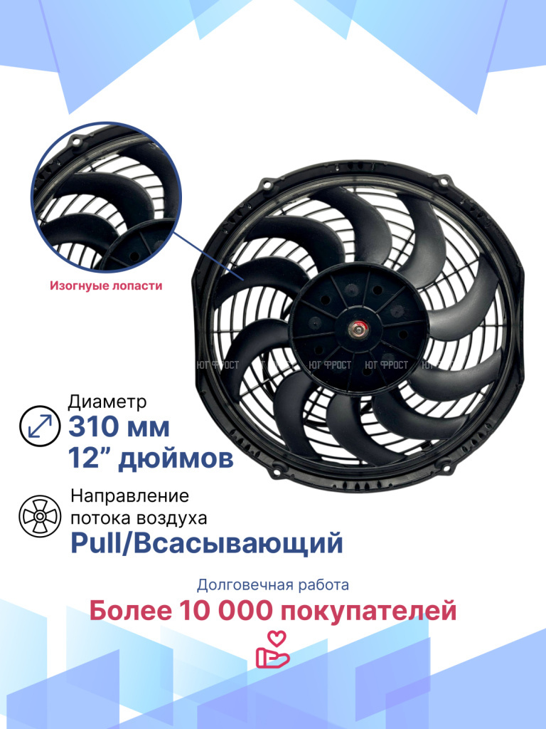 Вентилятор 12" 12V 120W (Pull/всас.) изогнутые лопасти. Pokka