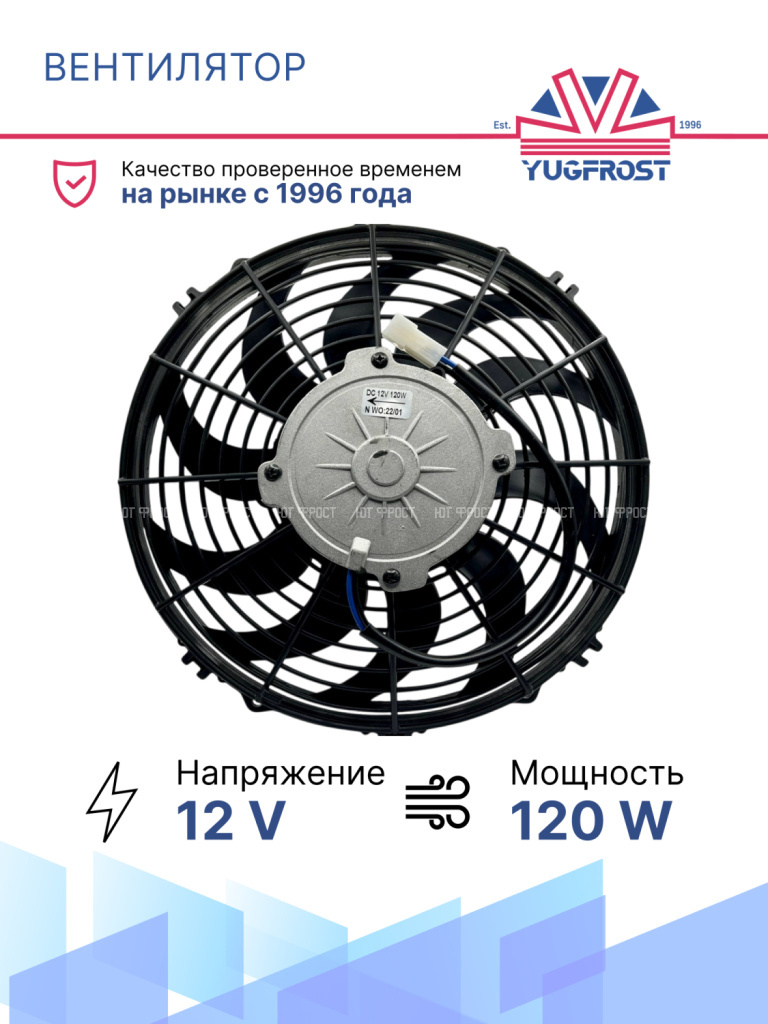 Универсальные вентиляторы имеют 4 основных размера (9”, 10”, 12”, 14”), 2 вида вольтажа (12В и 24В) и различную мощность (от 80Вт до 180Вт).