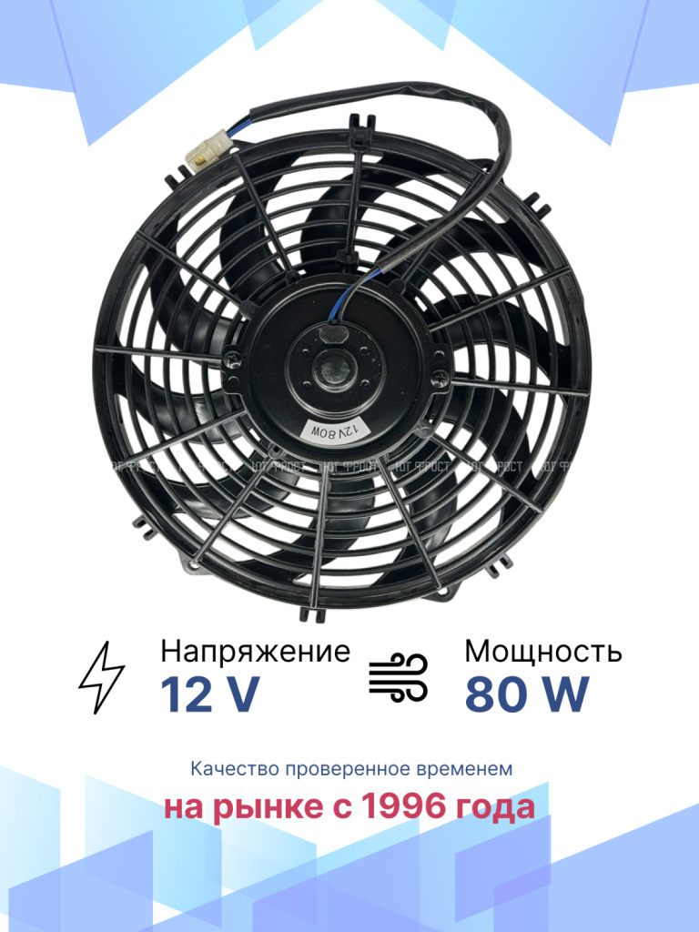Универсальные вентиляторы имеют 4 основных размера (9”, 10”, 12”, 14”), 2 вида вольтажа (12В и 24В) и различную мощность (от 80Вт до 180Вт).