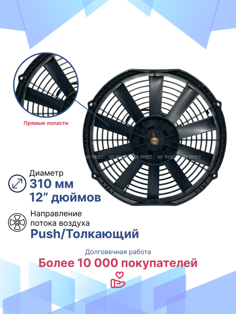 Вентилятор 12" 12V 80W (Push/толк 310 мм) Pokka