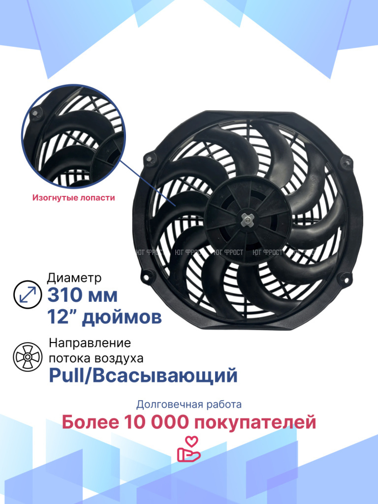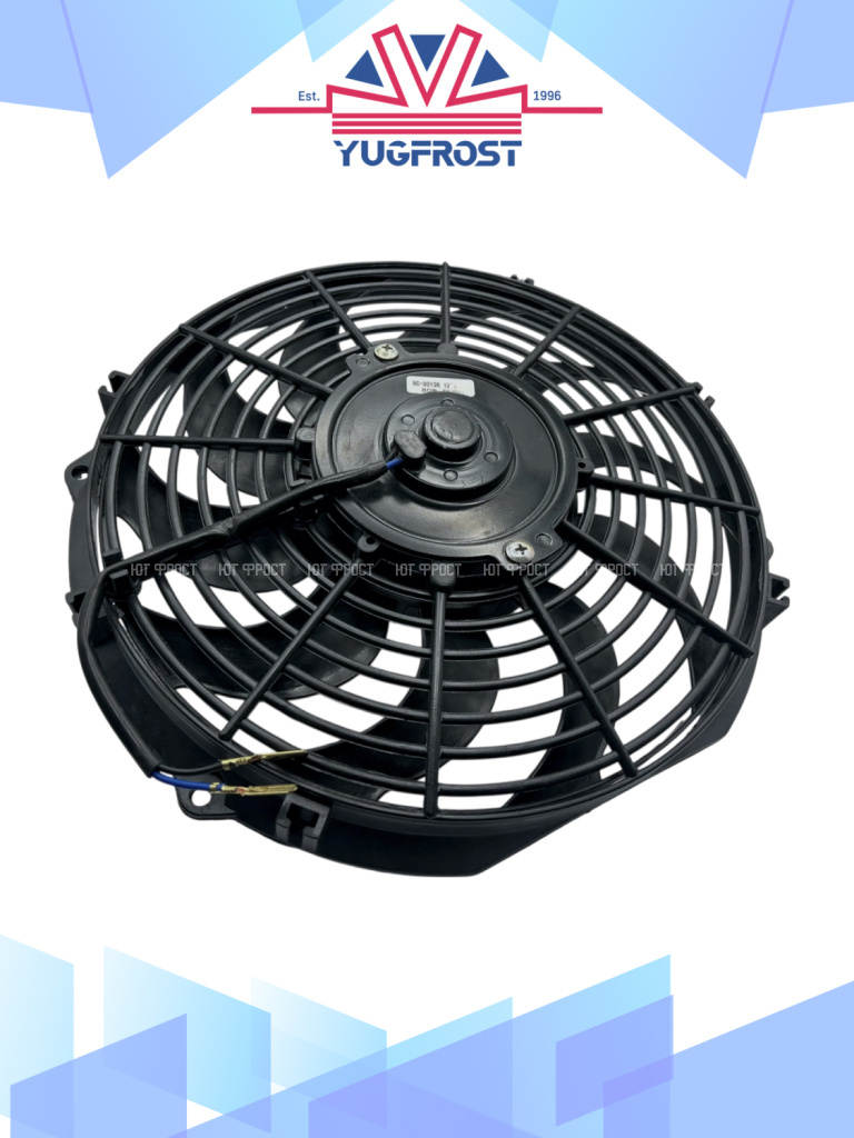Универсальные вентиляторы имеют 4 основных размера (9”, 10”, 12”, 14”), 2 вида вольтажа (12В и 24В) и различную мощность (от 80Вт до 180Вт).