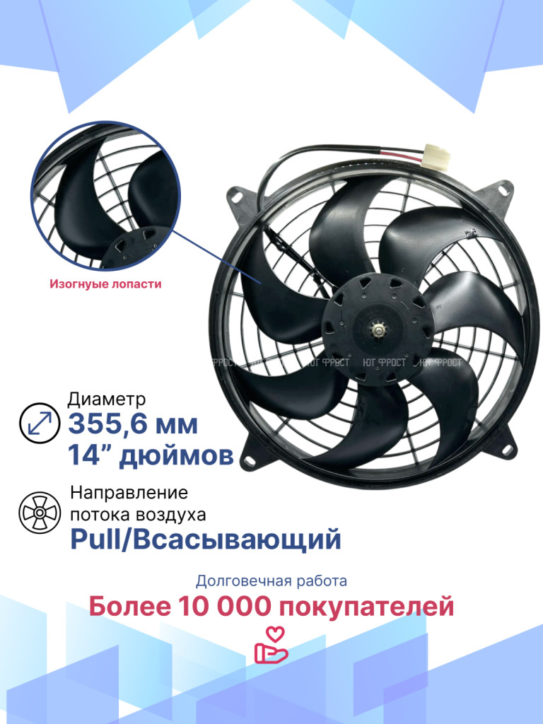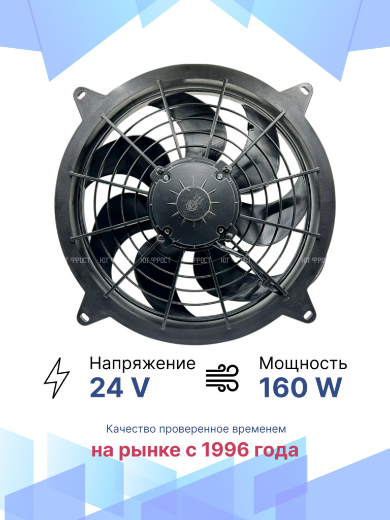 Универсальные вентиляторы имеют 4 основных размера (9”, 10”, 12”, 14”), 2 вида вольтажа (12В и 24В) и различную мощность (от 80Вт до 180Вт).
