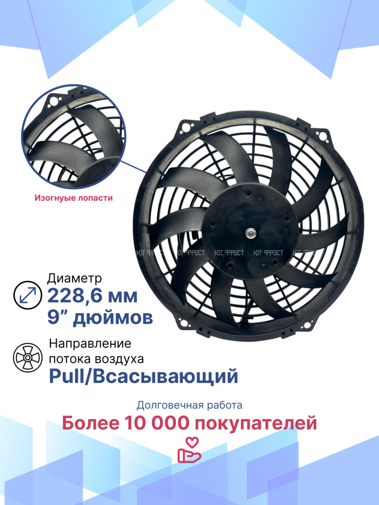 Вентилятор 9" 24V 160W (всас), изогнутые лопасти