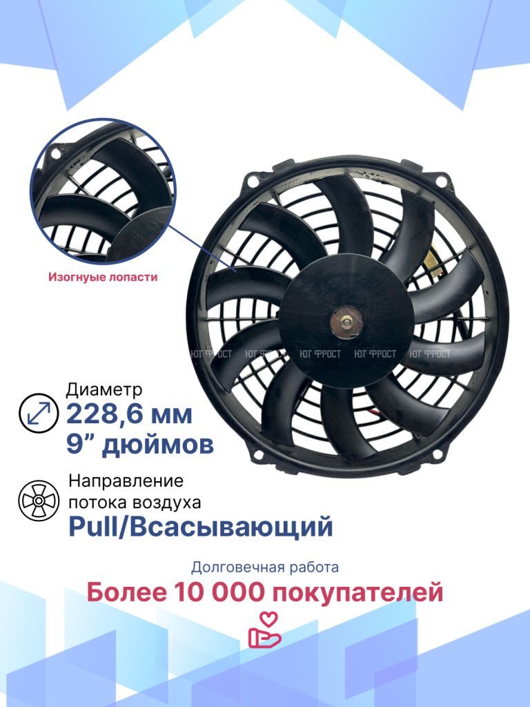 Вентилятор 9" 24V 80W (Pull/всас.) изогнутые лопасти. Pokka