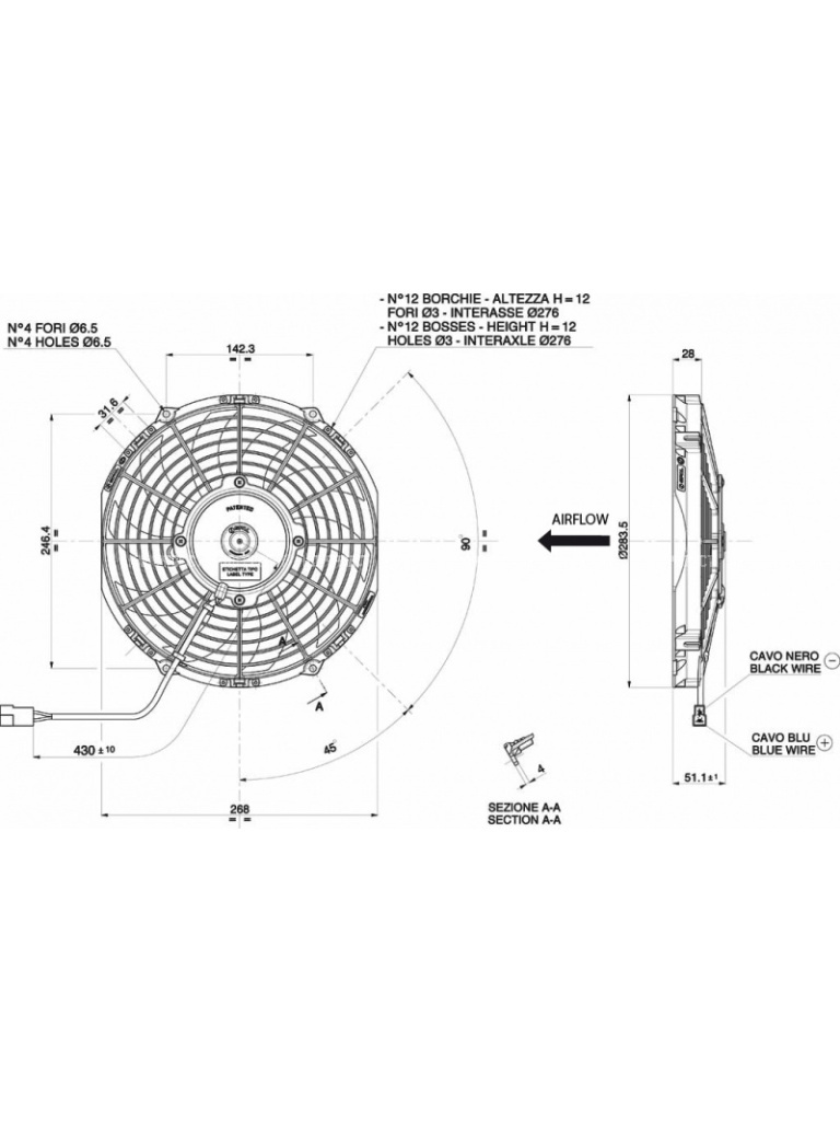 Вентилятор SPAL 10" 12V 80W (толк.) VA11-AP7/C-57S